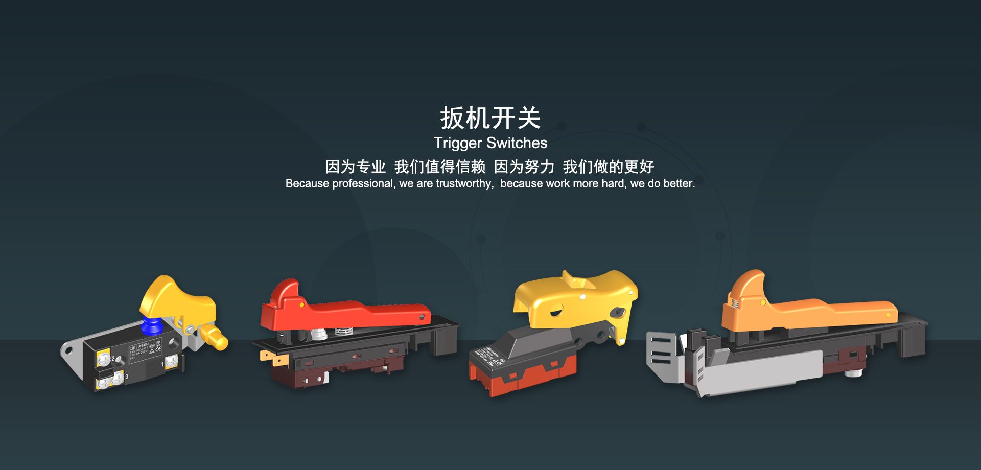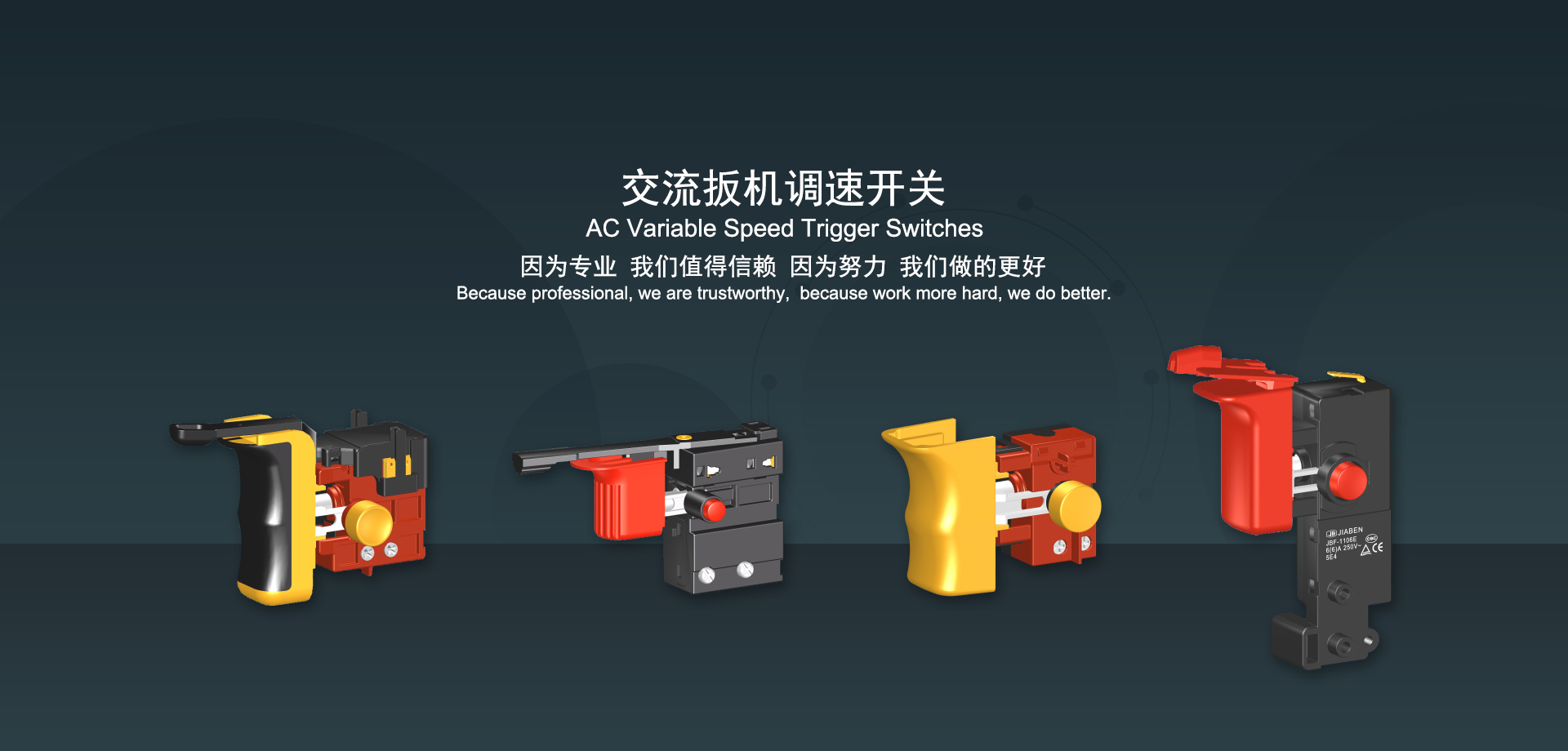 浙江佳奔電子有限公司始建于1986年,坐落于浙江省樂清市虹橋鎮東電子信息產業園內,現有職工700多人,資產總額超3億元。公司主要經營“JIABEN”牌微動開關、蹺板開關、按鈕開關、扳機開關、調速開關和電位器開關等各類交、直流器具開關和各類交、直流線路板模塊等產品,主要應用于交、直流電動工具、電動園林工具、清潔器具、家用電器和小型機床等行業,是集產品設計、研發、制造、銷售和服務于一體的國家高新技術企業。JIABEN was founded in 1986, located in East Electronic Information Industry Park, Hongqiao Town, Yueqing City, Zhejiang Proviance, existing staff more than 700 peoples, more than 300 million RMB worth of assets. Company is mainly engaged in "JIABEN" brand Micro Switch, Rocker Switch, Push-button Switch, Trigger Switch, Speed Regulating Switch, Potentiometer Switch and other kinds of appliance switch and all kinds of AC or DC circuit board module, such as more than 100 series, 8000 kinds of models of products, mainly used in AC or DC Power-tools, Power Gardening Tools, Cleaning Appliances, Household Appliances and Small Machine Tool and other industries, is the collection product design, research and development, manufacturing, sales and service in one of the national high and new technology enterprise.
